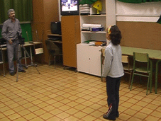 col·loca un referent humà en un punt determinat i se'l convida a desplaçar-se, seguint una trajectòria determinada. Aquesta acció es repeteix tres vegades, cadascuna amb un enregistrament diferent: