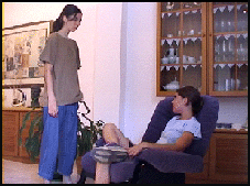 - En aquestes dues opcions es parteix d'un mateix pla per acabar en un altre després de fer un zoom. En el primer cas, continua mantenint l'aire a la seva esquerra, però en el segon és a l'inrevés, i produeix un efecte visual anormal que desorienta un xic quan es mira, perquè dóna la sensació d'haver-hi alguna cosa fora de lloc.