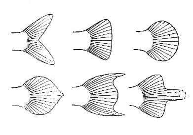 ALETES CABAL O CUA: ÉS L'ALETA DE LA CUA I ÉS LA PRINCIPAL ALETA PER ARRENCAR EL MOVIMENT. TENEN DIFERENTS FORMES