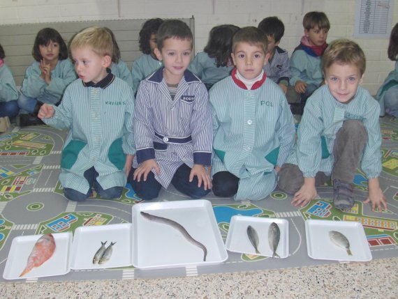 EL ROGER, JOSEP, POL I XAVIER ENS HAN COMPRAT UNS QUANTS PEIXETS A LA PEIXATERIA I ENS ELS HAN PORTAT PER PODER-LOS ESTUDIAR.