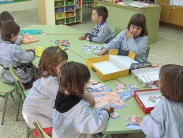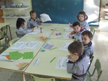 Formem vuit grups barrejant alumnes dels tres nivells i treballem aquests racons: caseta, construccions, contes, trencaclosques,plàstica, matemàtica, disfresses(només al segon trimestre), plastilina