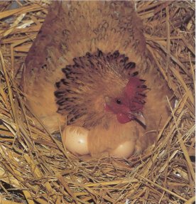 PER TAL QUE L'ESCALFOR ARRIBI A TOTES LES PARTS DE L'OU I QUE L'EMBRIÓ NO ES QUEDI ENGANXAT A LA CLOSCA, LA GALLINA GIRA ELS OUS AMB LES POTES I EL BEC.