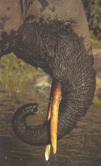 PER BEURE, XUCLEN L'AIGUA AMB LA TROMPA I DESPRÉS SE LA TIREN A LA BOCA.