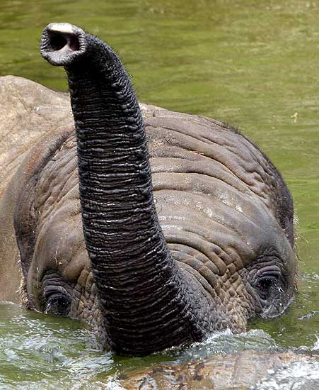 ALS ELEFANTS ELS AGRADA MOLT BANYAR-SE. DESPRÉS DE BEURE AIGUA EN UN RIU O EN UN LLAC ES REMULLEN TIRANT-SE AIGUA A L'ESQUENA AMB LA TROMPA O SE SUBMERGEIXEN COMPLETAMENT I TREUEN LA TROMPA PER RESPIRAR.