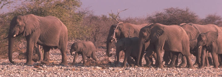 ACOSTUMEN A CAMINAR LLARGUES DISTÀNCIES EN BUSCA DEL MENJAR I L'AIGUA QUE NECESSITEN. ÉS LA MATRIARCA LA QUE ELS GUIA I ES RECORDA DELS LLOCS ON HI HA MENJAR I AIGUA. NORMALMENT SEGUEIXEN UNA RUTA RECORDADA, I SI DURANT AQUEST CAMÍ, ES TROBEN AMB UNA NOVA EDIFICACIÓ, LA TIREN A TERRA PER PODER PASSAR ELLS.