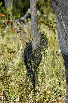 TÉ UNA CUA LLARGA ACABADA AMB UN FLOC DE PÈL. LA FA SERVIR PER ESPANTAR LES MOSQUES.