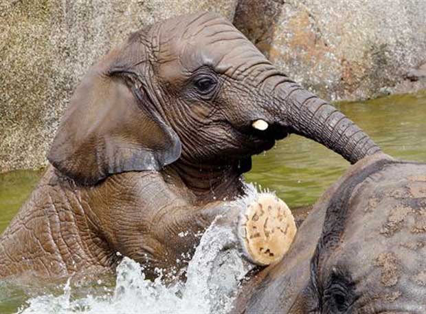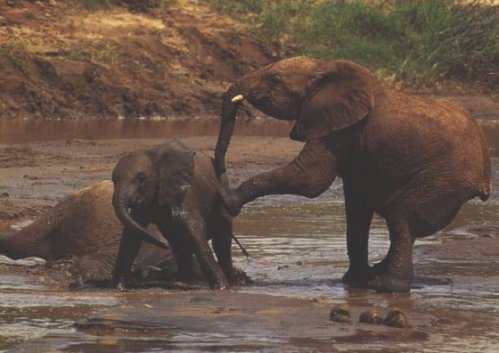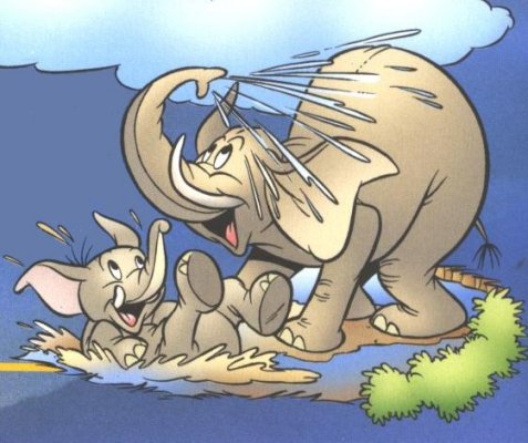 ELS ELEFANTS TENEN MOLTA CALOR PERQUÈ NO TENEN GLÀNDULES SUDORÍPARES A LA PELL, PER LA QUAL COSA NO SUEN. LLAVORS NECESSITEN REMULLAR-SE TOT SOVINT PER REFRESCAR-SE. HO FAN A LES AIGUES DEL RIU O DE LLACS.