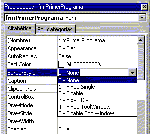 b- Canvieu el valor de la propietat Enabled i observeu que no podeu accedir al formulari. Per tancar el programa premeu: ![]() c- Què passa si canvies la propietat Visible? 2.- La propietat BorderStyle pot tenir quatre valors diferents. Quin efecte es produeix si es canvien aquests valors? ![]() 3.- Canvieu les propietats dels botons de comandament i observeu el seu efecte: Enabled, Visible. Canvis en la Font. Estilo de fuente: Negrita, Itálica. Fuente. Tamaño. Botons: Tachado, Subrayado. ![]() ![]() Per enviar al professor tutor. (Directori C:\VBCurs\VBExerci\m1\p1) E1. Envieu el mateix programa amb les següents característiques: