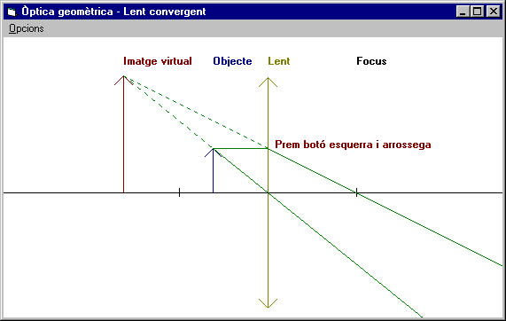 Observeu que hi ha de més la barra de menú, Opcions i que la frase Prem botó esquerra i arrossega no està a la cantonada sinó en el lloc on es troba la rata. Això és un Hint, que ens aparegui una petita informació, pista, en el lloc oportú.