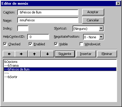 - Finalment hi posem el submenú Sortir que servirà per abandonar el programa.