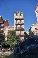 | Porxada de l'aparcament, escultura "Astrolabi" i casa modernista a la cantonada (nº 9-10) | |