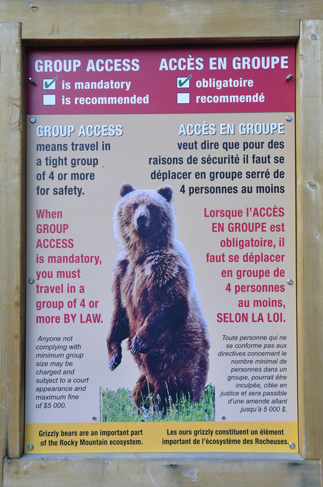 Al entrar en el parque nos compramos el pase anual ya que por 65 $/persona puedes ir a todos los parques de Canadá, en caso contrario has de pagar 9 $ por cada día que estés. Este pase se compra por persona o por familia 135 $ (2 adultos y dos niños). Nosotros tenemos que comprar para los 2. Es mucho más caro que en USA, ya que el pase anual cuesta 80 $ y es para todas las personas que vayan en el coche, sean 2 o 9, da lo mismo. De hecho pueden ir 2 coches con el mismo pase si van juntos.