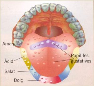 La llengua és l'òrgan del sentit del gust. A la llengua es troben les papil·les gustatives, que recullen els sabors dolç, amarg, salat i àcid dels aliments i envien la informació a l'encèfal a través del nervi del gust.