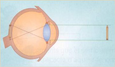 El cristal·lí desvia els rajos que, després de creuar-se, projecten una imatge més petita i invertida sobre la retina. |