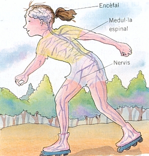 El sistema nerviós s'encarrega de controlar totes les activitats del cos. Està format pels centres nerviosos i els nervis. |