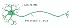 Les cèl·lules que formen els òrgans del sistema nerviós són les neurones. Tenen un cos central i diverses prolongacions, una d'elles molt llarga. Les neurones estan unides entre si pels extrems de les prolongacions. |
