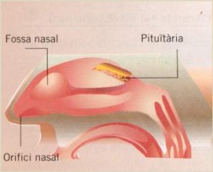 El nas és l'òrgan del sentit de l'olfacte. Està format per dues cavitats que comuniquen amb l'exterior. A la part superior de cada cavitat hi ha la pituïtària, una membrana que capta les olors i envia la informació a l'encèfal pel nervi de l'olfacte.