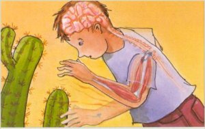 En punxar-nos, els nervis envien la informació a la medul·la espinal, i aquesta elabora l'ordre de retirar la mà, que és transmesa als músculs corresponents. Es tracta d'un moviment reflex o involuntari, ja que el realitzem inconscientment. Els moviments reflexos són ordenats per la medul·la espinal. |