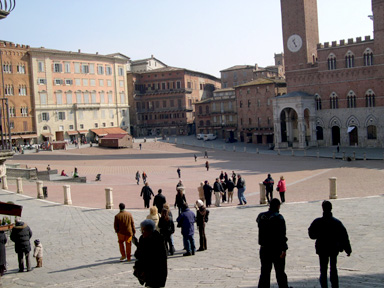 Van sortir i van anar a passejar per la ciutat a veure la famosa Piazza d'Il Campo, que és una plaça tan gran que si et poses a una punta, no pots veure qui hi ha a l'altre punta de la plaça. Ah!! i fa baixada......