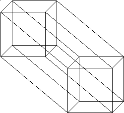 I si una línea està formada per punts, un quadrat per rectes i un cub per quadrats, ¿no seria lògic que la figura relativa al cub en quatre dimensions, que nosaltres anomenem THEMANCUBUSKIE, no estigués formada per cubs?. La nostra criatura tetradimensional és una figura amb cubs per cares. La forma d'aconseguir aquesta figura és la següent: a partir del cub que tenim, en clonem un al costat idèntic a l'anterior. Ara tenim dos cubs, i els seus vèrtexs els unim amb arestes i ens queda el nostre simpàtic descobriment.