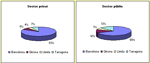 L'objectiu és representar gràficament unes dades fent servir els gràfics circulars d'Excel, que, segurament, són els més senzills. En aquest cas, representareu les dades de la matrícula d'alumnes d'ESO, per províncies i per sectors, del curs 2001-2002. Us hauria de quedar semblant a: