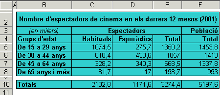 seleccionat es comporta com una sola cel·la. Entreu-hi el rètol "Espectadors".
