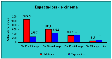 el nombre d'espectadors en cada grup d'edat, classificats en habituals