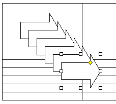 Seleccioneu-la fent clic amb el ratolí i apliqueu Girar libremente del menú Dibujo | Girar o voltear. Veureu que la forma es veu envoltada per quatre cercles petits verds. Si hi poseu el cursor a sobre de qualsevol, es transforma en una fletxa corba que us permetrà girar lliurement la forma arrossegant amb el ratolí. Canvieu-li la orientació fins a aconseguir l'efecte desitjat. Després, feu una o dues còpies de l'autoforma i distribuïu-les per les cel·les. A les cel·les restants, podeu posar, si voleu, l'autoforma original. |