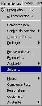 | En l'Excel l'eina Solver es troba al menú Herramientas. Les dues imatges següents mostren dos menús Herramientas diferents, el de la dreta conté l'eina SOLVER i el de l'esquerra no | ||||||||