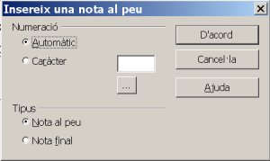 Ho heu de fer situant-vos darrera la paraula en qüestió i fer Insereix | Nota al peu