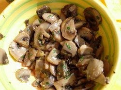 Seis espárragos trigueros gruesos, ocho champiñones, cuatro rovellons (todo troceado)
