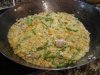 2.- Cuando empieza a tomar color se le añaden los espárragos y se va removiendo e inmediatamente se le añade el champiñón y los rovellones.