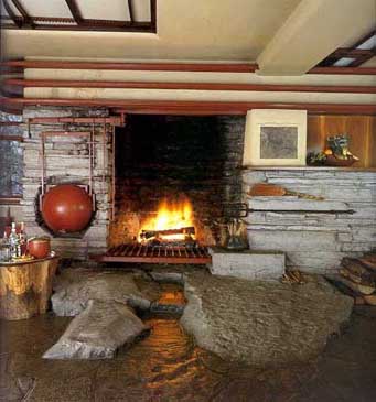 salt d'aigua, hi volia posar la seva casa. Llavors va encarregar-la a Frank Lloyd Wright, un gran arquitecte nordamericà: ell creia possible construir sense fer malbé la natura, unint-la a l'arquitectura; Wright va proposar aixecar la casa damunt la cascada. |