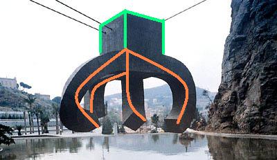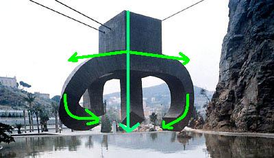 -el pes visual i la densitat matèrica de la part racional i, la delimitació del buit i la levitat que generen les formes còncaves.