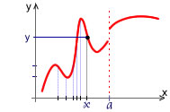 Recuerda que una función real de variable real suele venirnos dada por una fórmula y = f(x) y ésta, con cada valor numérico de la x, nos da un solo valor de la y, o ninguno. Los valores de la x que proporcionan un valor para la y constituyen lo que se llama el dominio de la función f; los valores obtenidos para la y forman lo que se llama recorrido de f, o materiales/limites/limites_concept/imagen de f. Si un valor de x nos da un valor de y, entonces decimos que f está definida en x; de lo contrario, se dice que f es una función no definida en x. |