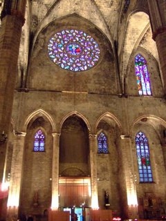 Significat: • La seva construcció va ser en bona part sufragada pels mercaders, nobles i gremis marítims que vivien al barri. Segons una coneguda llegenda de la ciutat, santa Eulàlia, antiga patrona de Barcelona, havia estat enterrada en aquest mateix lloc al segle VI. • L'edificació de Santa Maria del Mar s'inscriu en el procés d'expansió urbana i la intensa activitat constructiva que va experimentar la ciutat durant el segle XIV, arran de l'impuls econòmic del segle anterior. • Aquest creixement, promogut en bona mesura per l'expansió catalana per la Mediterrània, va fer que es generessin contínues fundacions d'altars que invocaven la protecció de la Mare de Déu a l'interior de la vella església (Santa Maria de les Arenes), de capacitat insuficient. Funció: • Litúrgica. Religiosa, dedicada a la Mare de Déu, protectora del mar i les activitats marítimes. Destrosses. L'abundant decoració interior fou malmesa el 1714, durant un bombardeig que danyà també les voltes, i desaparegué definitivament amb l'incendi del 1936 que destruí, entre altres obres notables, el retaule barroc construït entre 1772 i 1783 per Deodat Casanoves i Salvador Gurri. Les tasques de restauració fetes després de la guerra es clouen el 1967, amb la construcció del nou presbiteri al damunt d'una cripta. |
