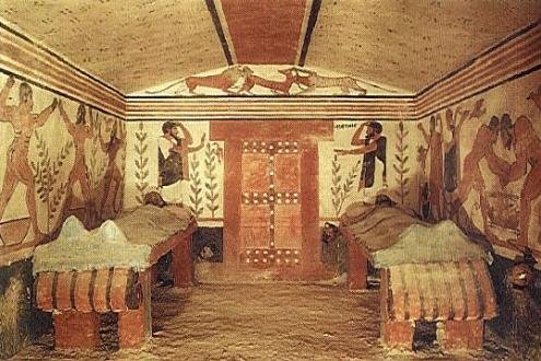El seu art és eminentment de caràcter religiós, amb la intenció d'obeir la voluntat dels seus déus, per tal de no caure en desgràcia. Igualment, tal i com també succeïa en les civilitzacions egípcia i mesopotàmica, el poble etrusc dona molta importància a la vida després de la mort.