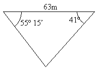 AB són respectivament, de 38º i 53º. Calcula l'altura