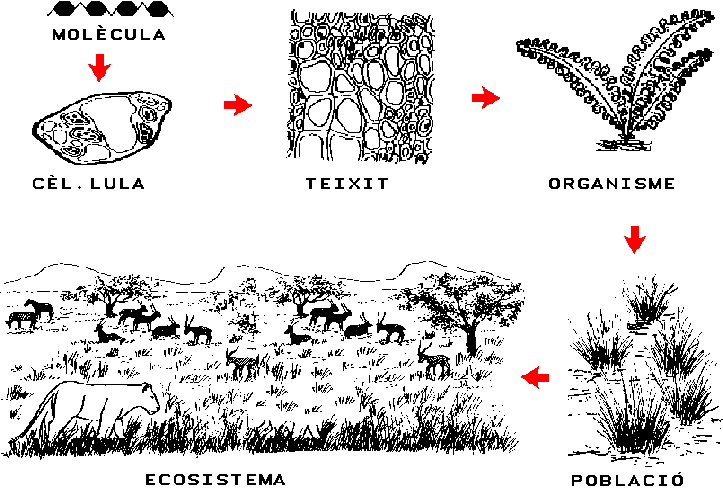 simple a més complex, són: nivell molecular, nivell cel·lular,