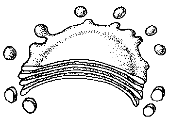 aplanades de les que es desprenen vesícules.