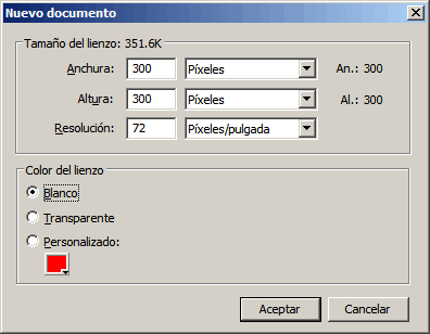 Tot seguit apareix una finestra que us demana les mides del document, la resolució i color de fons.