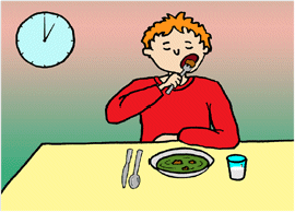 Es tracta d'exercicis d'escriptura i familiarització amb el teclat basades amb les activitats del cicle de les hores. L'activitat consta de dos exercicis - Dictat de rellotges. L'exercici mostra rellotges i cal escriure l'hora marcada per saber l'activitat que s'hi fa habitualment - Dictat d'accions L'exercici dicta les accions i cal escriure-les en primera persona dels present (dormo, menjo, esmozo, ...)