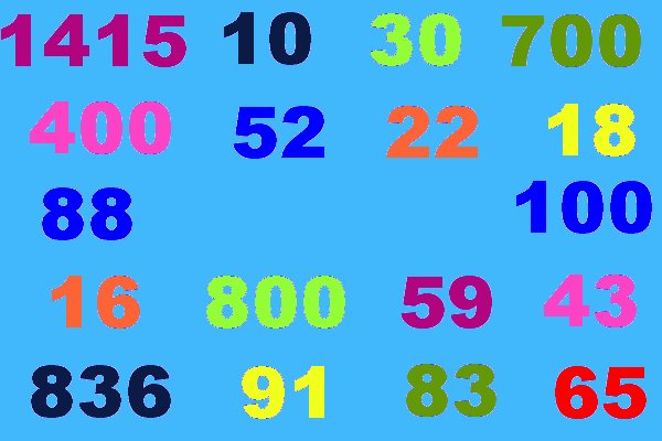 Aquest exercicis e treballen la comprensió i expressió de quantitats numèriques a un nivell de síntesis, no un nivell bàsic, amb quantitats barrejades que arriben més enllà del miler. Hi ha tres exercicis diferents - Aparellar dictat gràfica de números que cal aparellar amb els seus iguals - Comprensió oral dictat amb veu de quantitats que cal seleccionar amb el ratolí sobre una pantalla amb les respostes - Comprendre i escriure dictat amb veu de quantitats que cal escriure amb el teclat