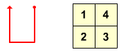 Des de la casella superior esquerra es comença a comptar: 1, 2, 3...