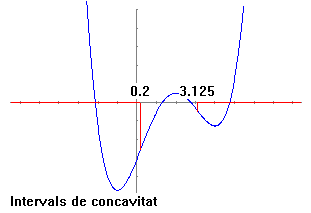 A continuació podem estudiar els intervals de concavitat i convexitat, que ens són mostrats per les corresponents opcions del menú i relacionar-les amb el signe de la segona derivada. També podem estudiar els punts d'inflexió (aquests els podem relacionar amb la primera i la segona derivada)