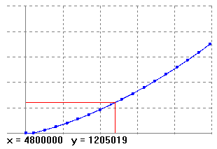 (Font: Guía practica para la cumplimentación de la declaración de renta, Hacienda Pública. Corresponent a l'exercici 1994. La declaració es va fer l'any 1995) Representem les dades anteriors utilitzant la interpolació lineal i cerquem la imatge de 4800000. La gràfica és la següent: