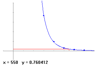 Per explicar el concepte d'asímptota horitzontal representem la mateixa funció juntament amb la recta x = 1.