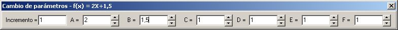 3-Opción, Cambiar parámetros, esta nueva opción da una nuevo valor pedagógico muy importante ya que si lo que queremos es, por ejemplo, mostrar las diferencias de las funciones lineales, pendiente y ordenada en el origen, funciones del tipo y=ax+b podemos escribir exactamente eso y mediante un clic de ratón o pulsando la flecha arriba o abajo podemos cambiar dinámicamente el valor de dichos parámetros sin necesidad de ir cada vez a la ventana, FUNCIONES - Entrada de datos