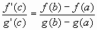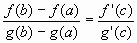 Quan tenim f(x) i g(x) dues funcions contínues en [a , b] i derivables en (a , b). Existeix un punt c que pertany a (a , b) tal que