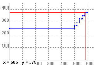Dibuixem la funció i representem la imatge de 585 metres que ens dòna el preu que hem de pagar que són 375 pts.
